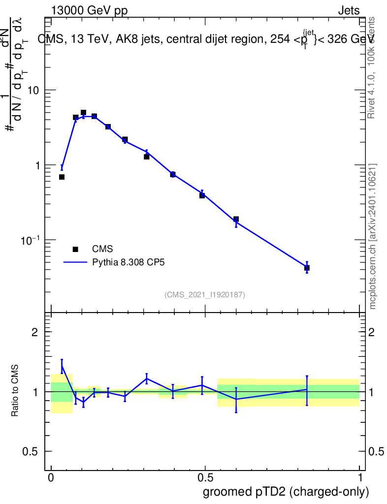 Lines: data, pythia8 8.308 CP5 |