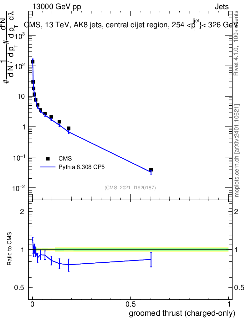 Lines: data, pythia8 8.308 CP5 |