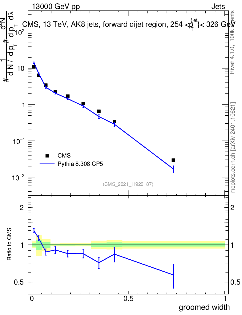 Lines: data, pythia8 8.308 CP5 |