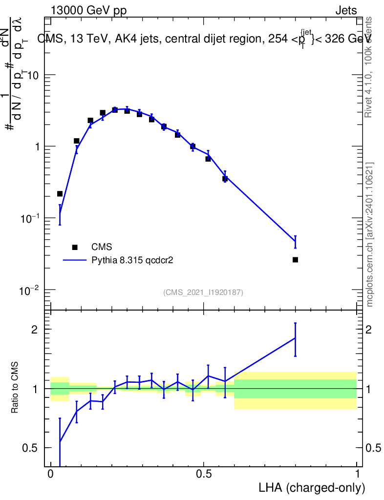 Lines: data, pythia8 8.315 qcdcr2 |