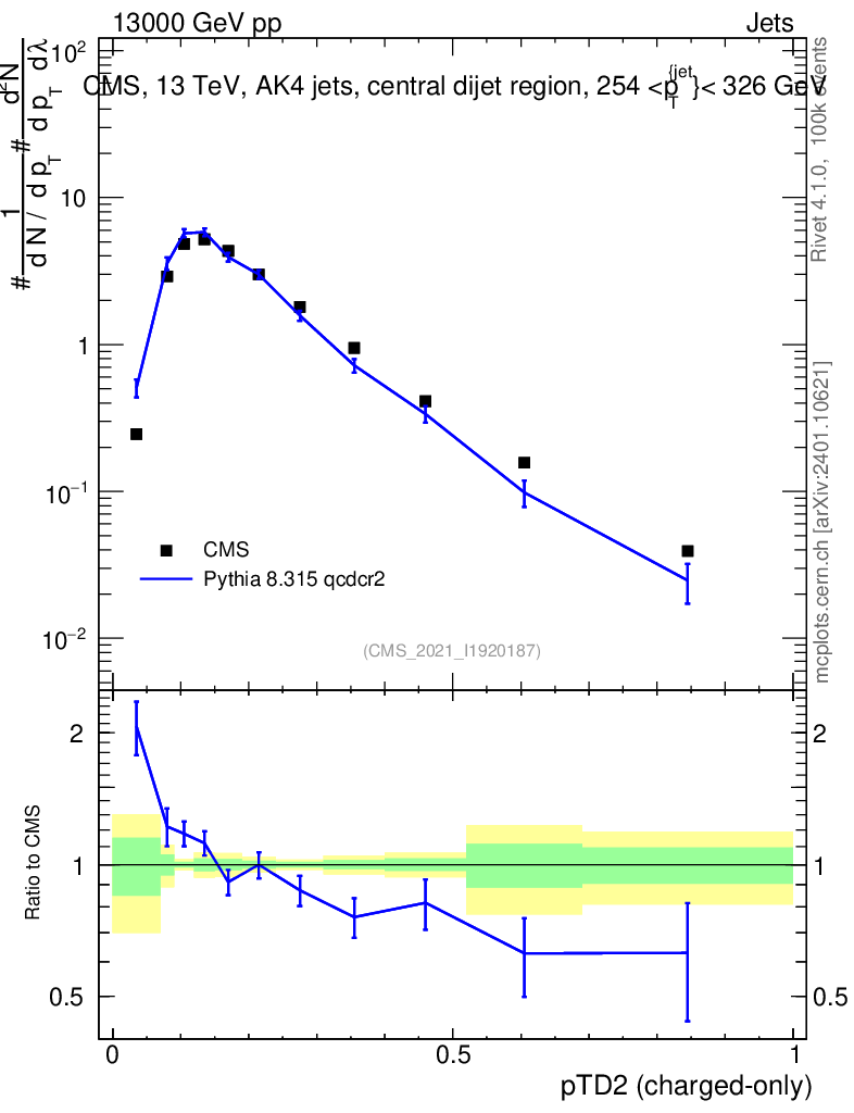 Lines: data, pythia8 8.315 qcdcr2 |