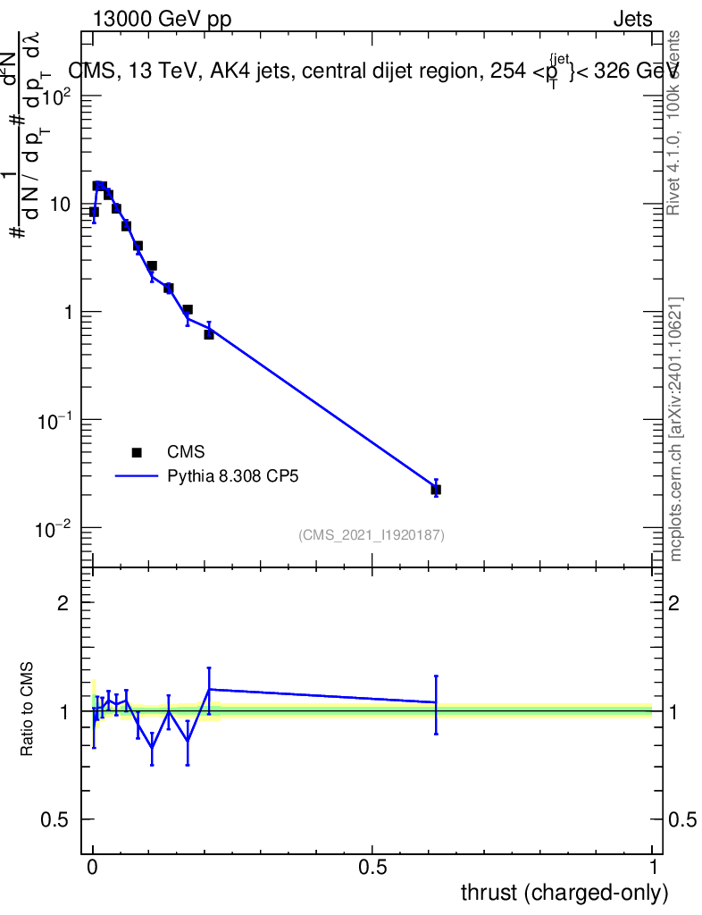 Lines: data, pythia8 8.308 CP5 |