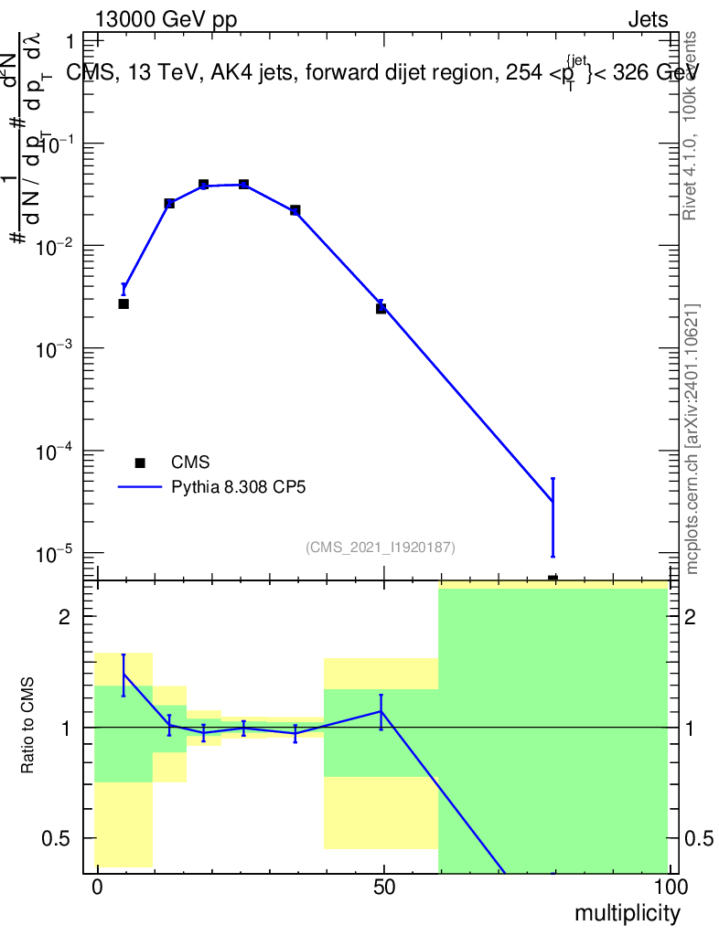Lines: data, pythia8 8.308 CP5 |