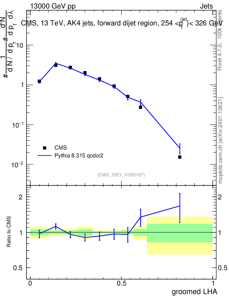 Lines: data, pythia8 8.315 qcdcr2 |