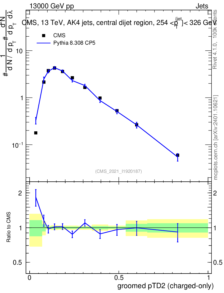 Lines: data, pythia8 8.308 CP5 |