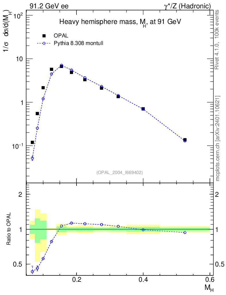 Lines: data, pythia8 8.308 montull |