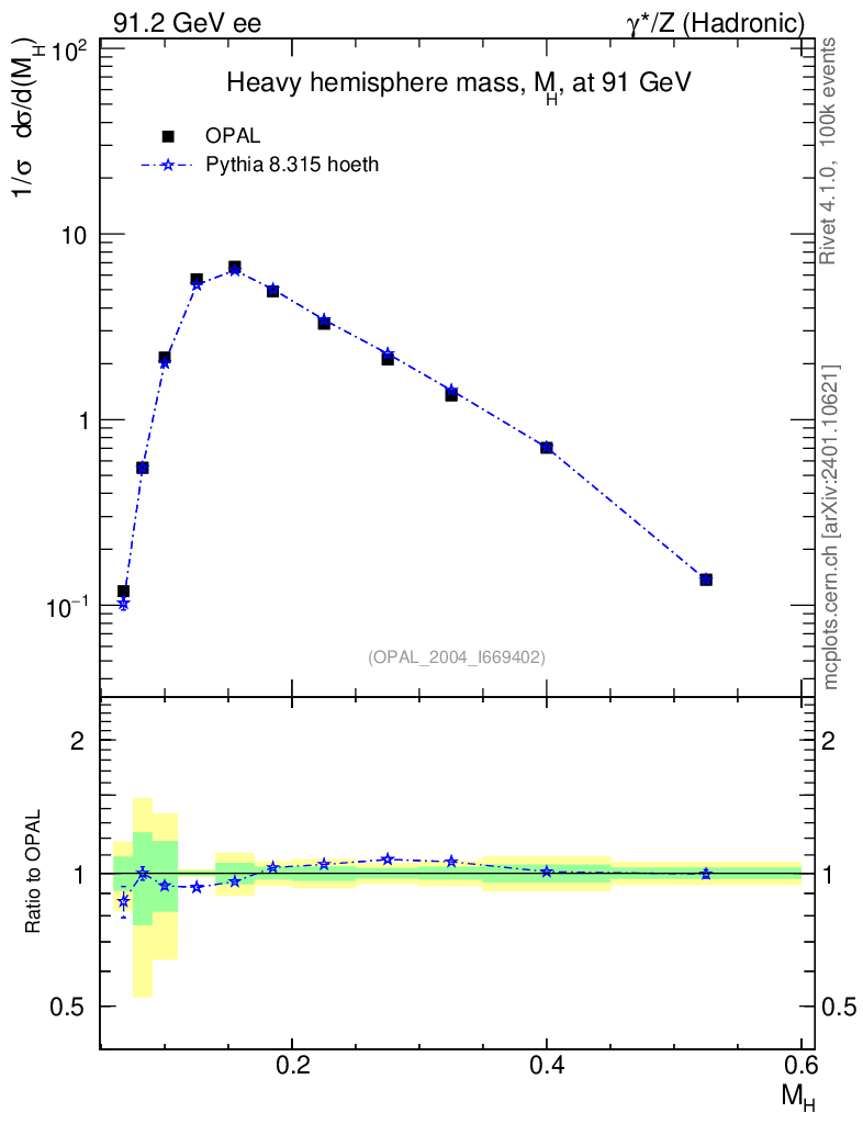 Lines: data, pythia8 8.315 hoeth |