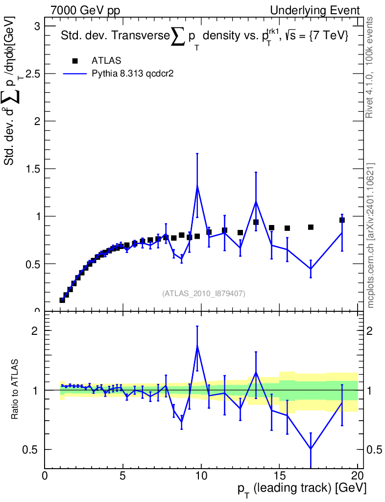 Lines: data, pythia8 8.313 qcdcr2 |