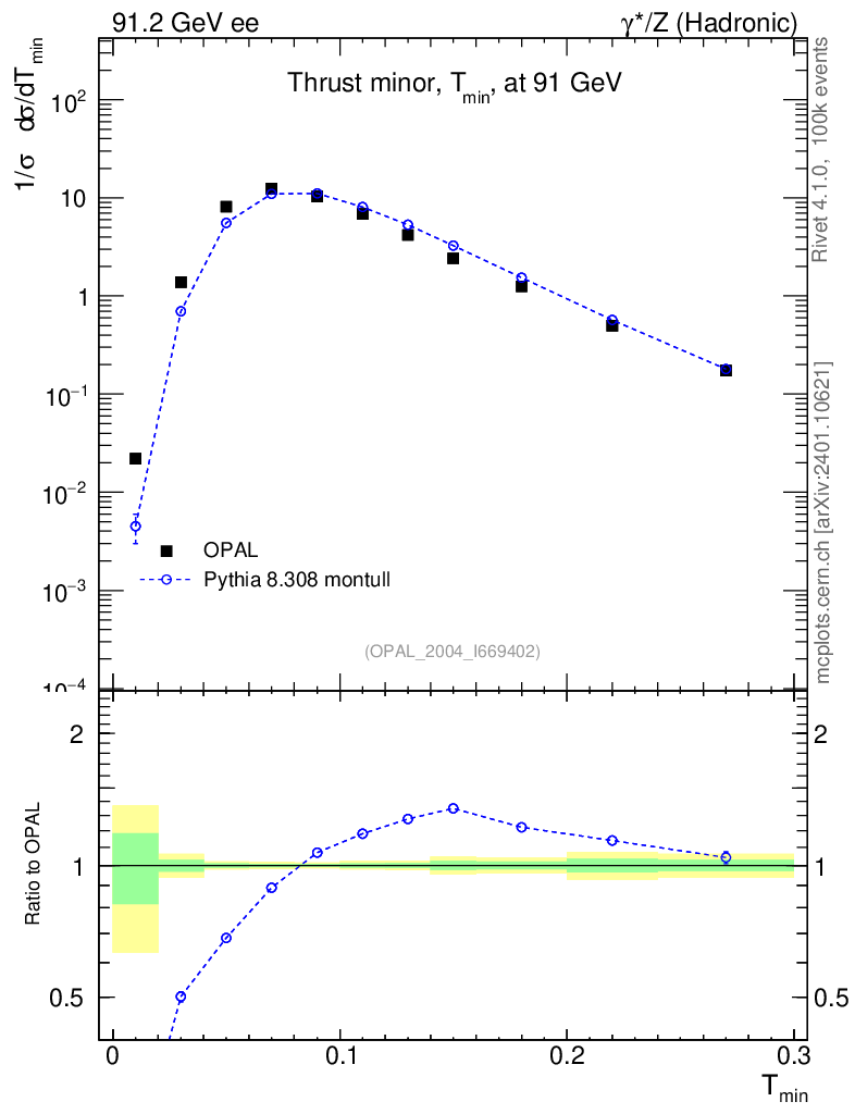 Lines: data, pythia8 8.308 montull |