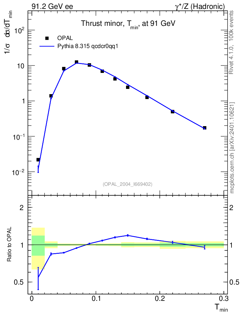 Lines: data, pythia8 8.315 qcdcr0qq1 |