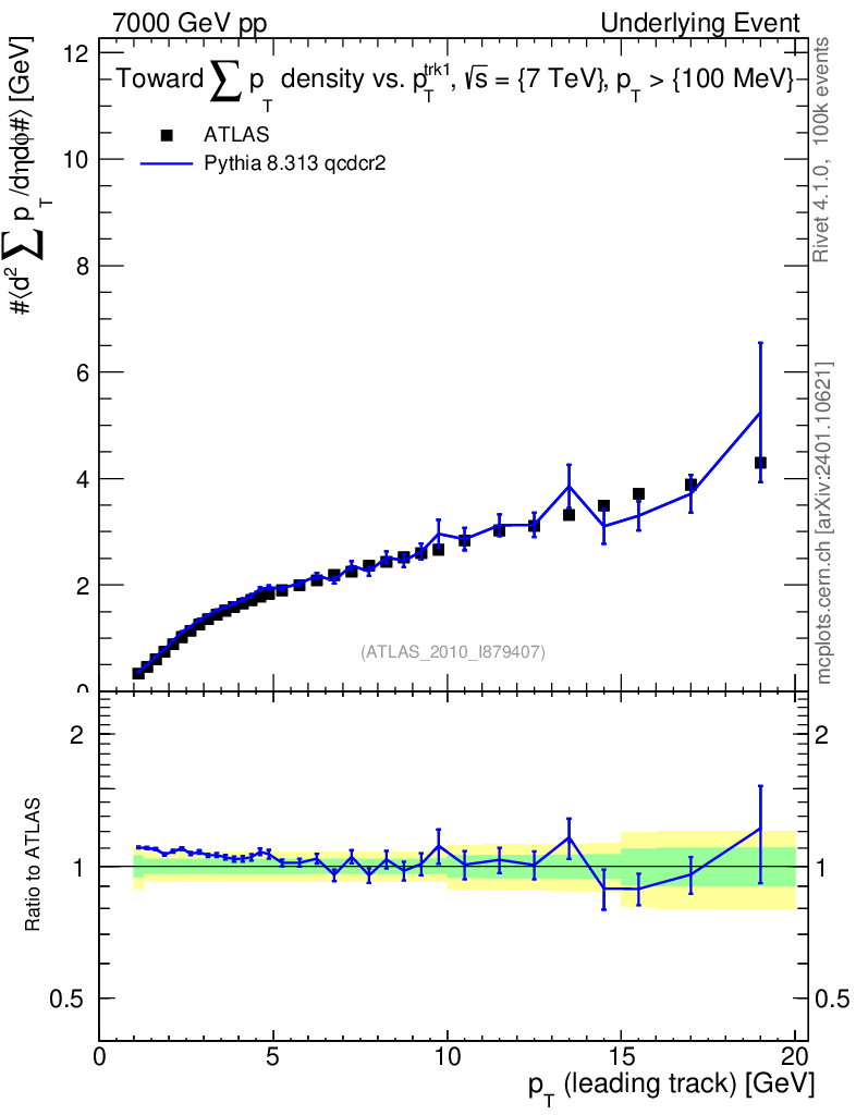 Lines: data, pythia8 8.313 qcdcr2 |