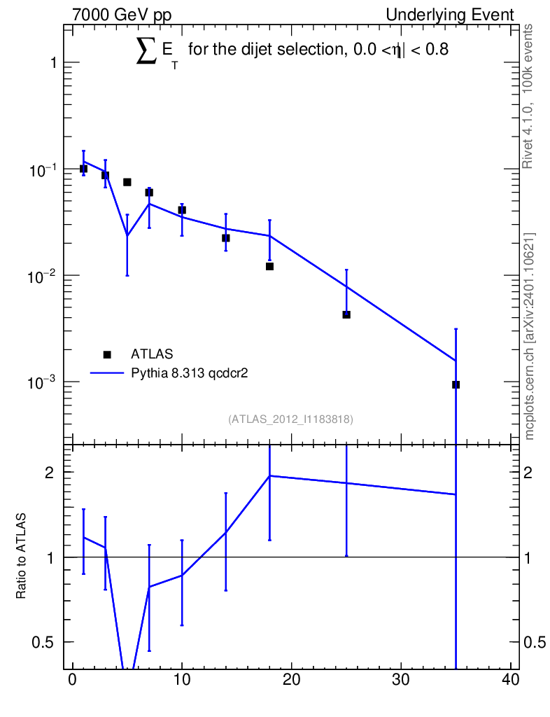 Lines: data, pythia8 8.313 qcdcr2 |