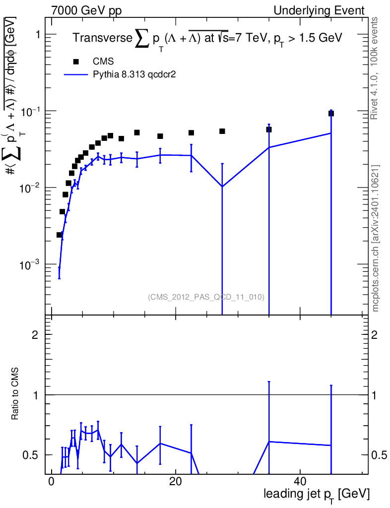 Lines: data, pythia8 8.313 qcdcr2 |