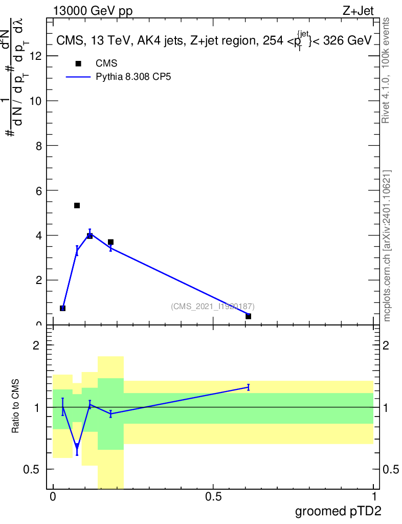 Lines: data, pythia8 8.308 CP5 |