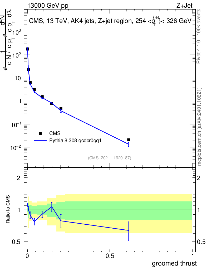 Lines: data, pythia8 8.308 qcdcr0qq1 |