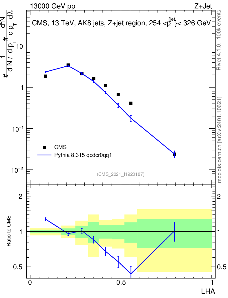 Lines: data, pythia8 8.315 qcdcr0qq1 |