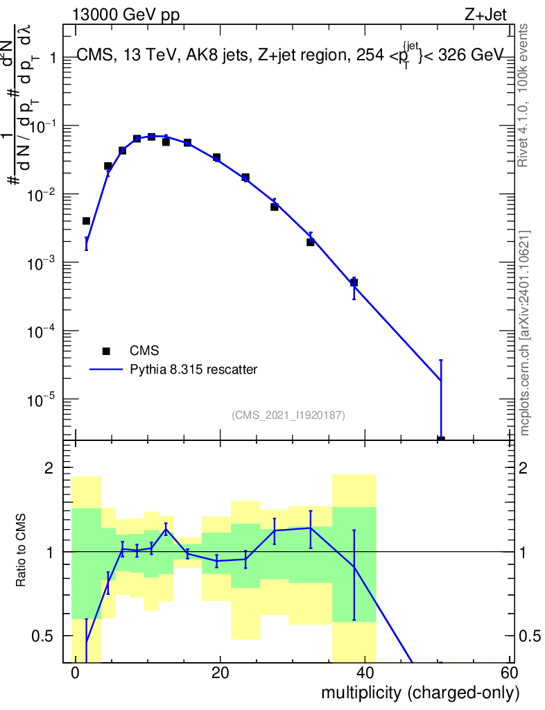 Lines: data, pythia8 8.315 rescatter |