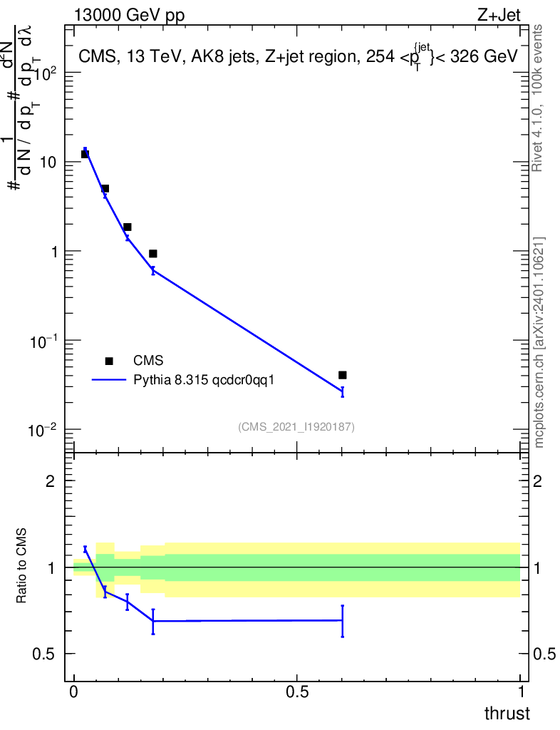 Lines: data, pythia8 8.315 qcdcr0qq1 |
