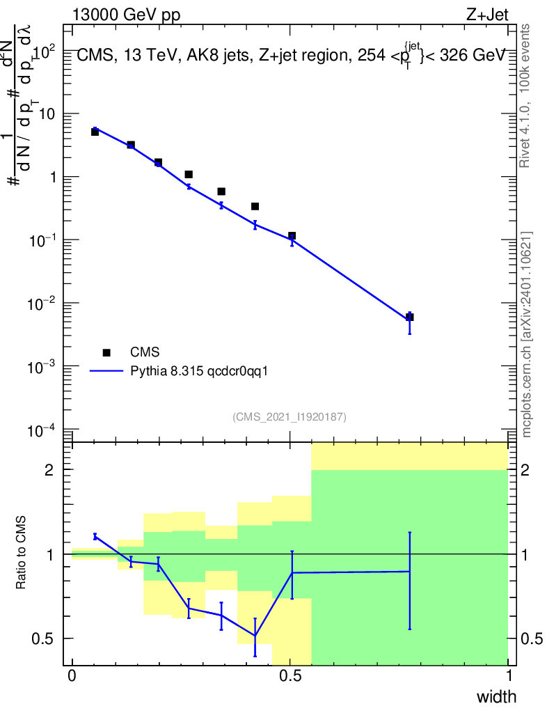 Lines: data, pythia8 8.315 qcdcr0qq1 |