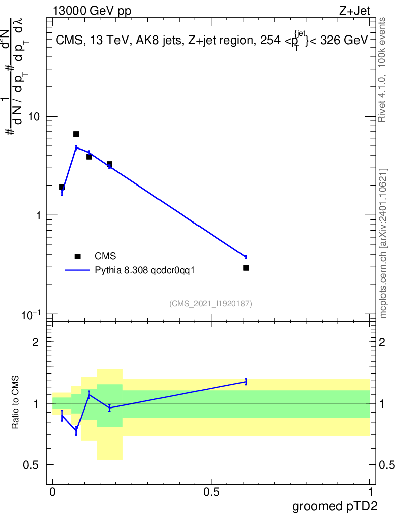 Lines: data, pythia8 8.308 qcdcr0qq1 |