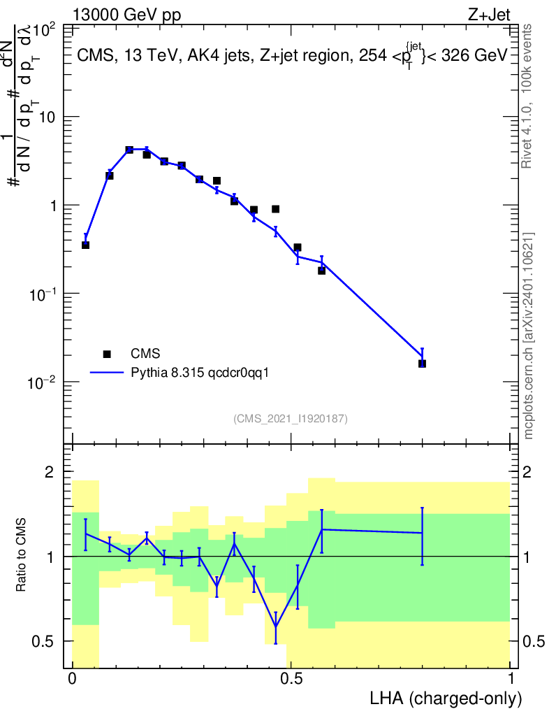 Lines: data, pythia8 8.315 qcdcr0qq1 |