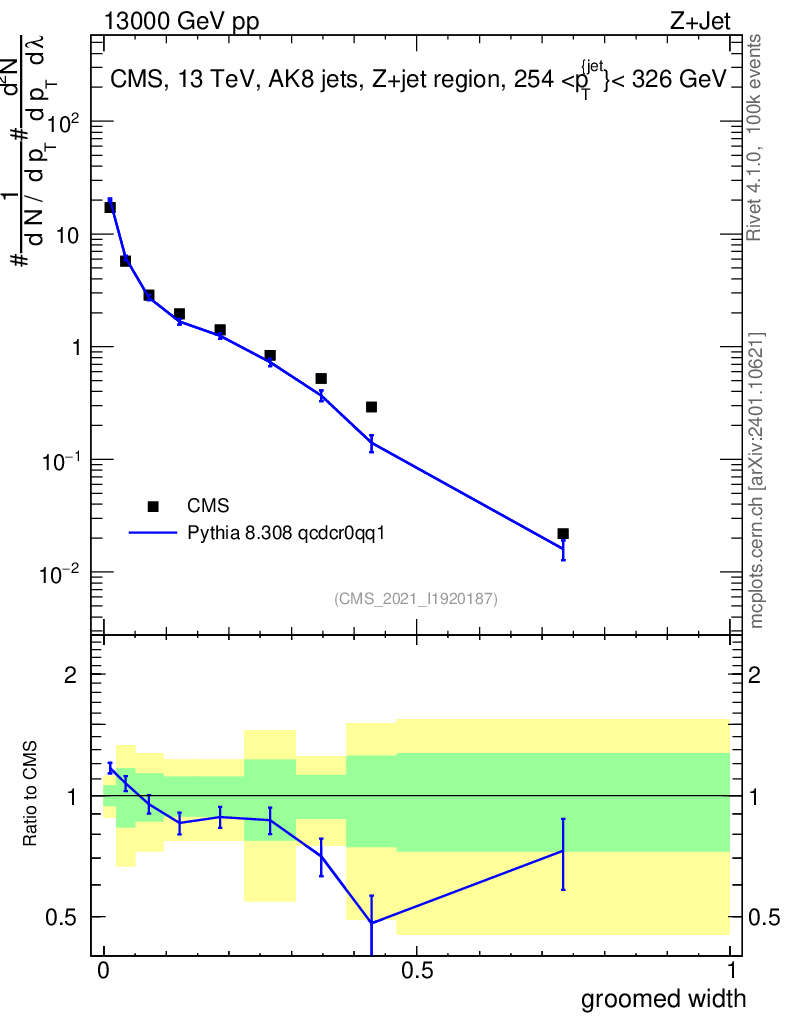 Lines: data, pythia8 8.308 qcdcr0qq1 |