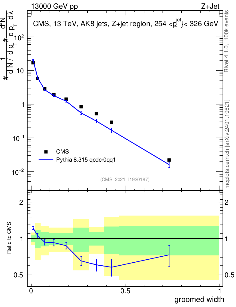 Lines: data, pythia8 8.315 qcdcr0qq1 |