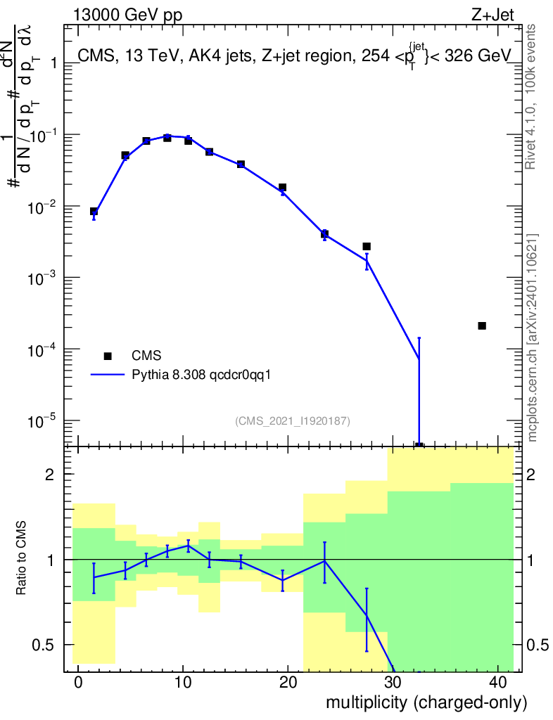 Lines: data, pythia8 8.308 qcdcr0qq1 |