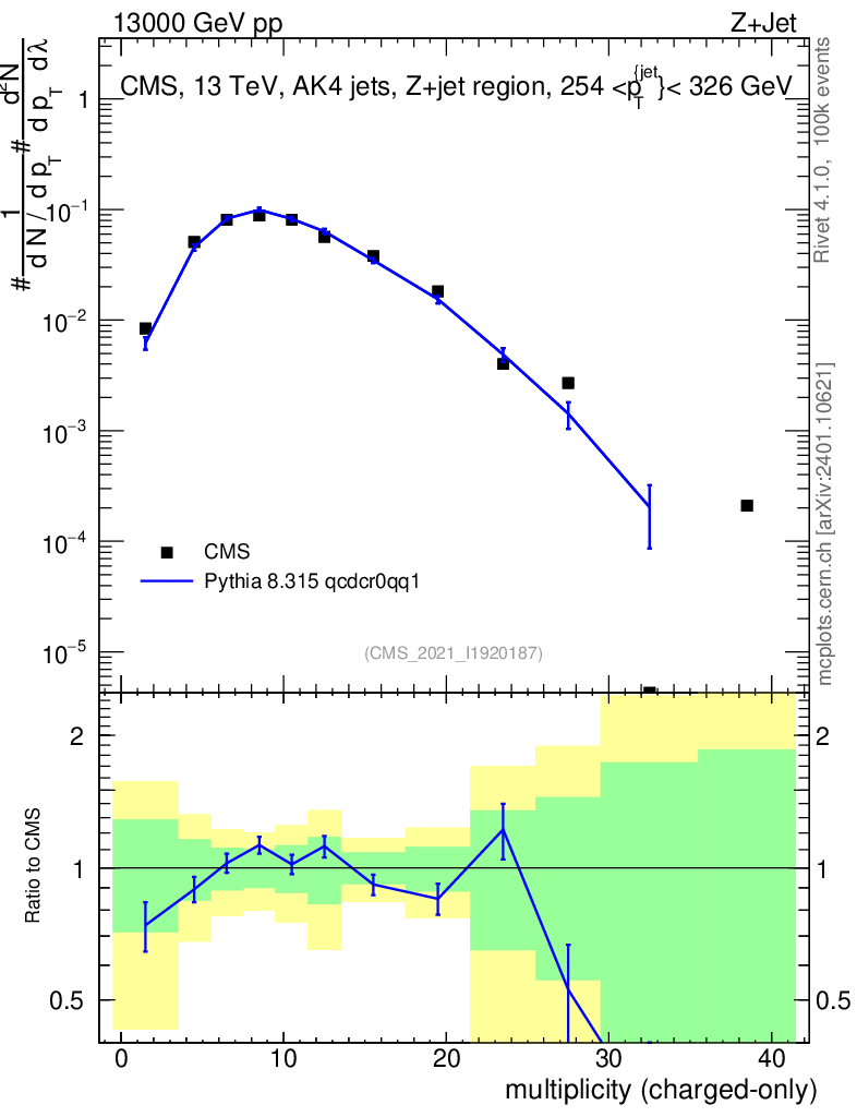 Lines: data, pythia8 8.315 qcdcr0qq1 |