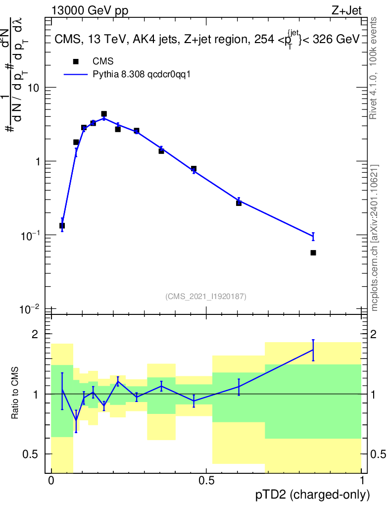 Lines: data, pythia8 8.308 qcdcr0qq1 |
