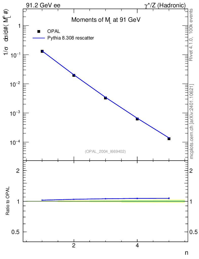 Lines: data, pythia8 8.308 rescatter |