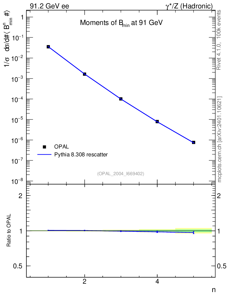 Lines: data, pythia8 8.308 rescatter |