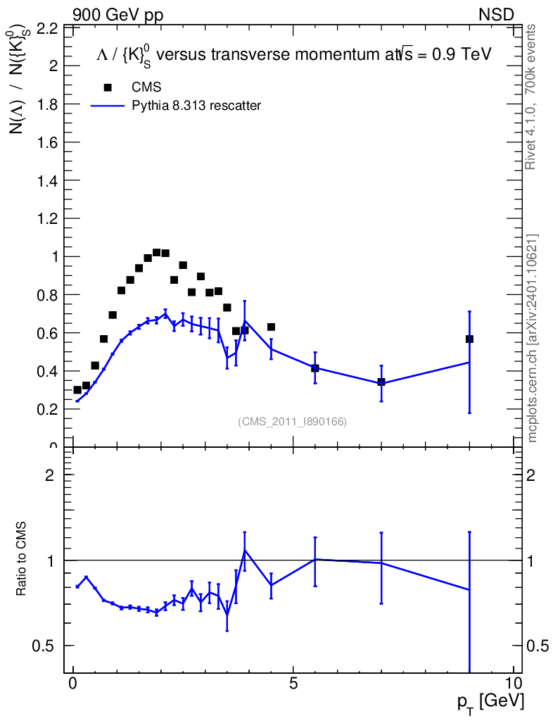 Observable: Λ/K0S vs pT