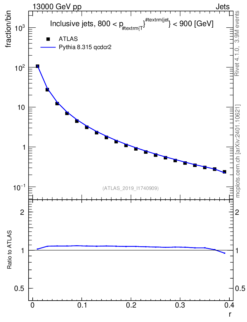 Lines: data, pythia8 8.315 qcdcr2 |