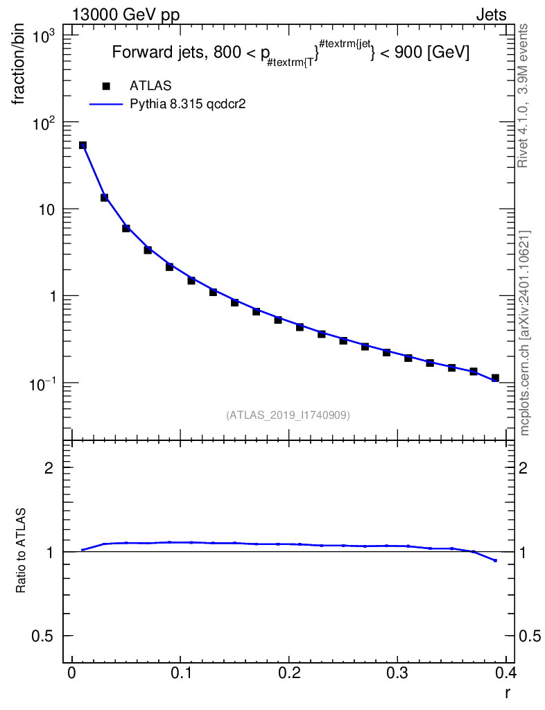 Lines: data, pythia8 8.315 qcdcr2 |