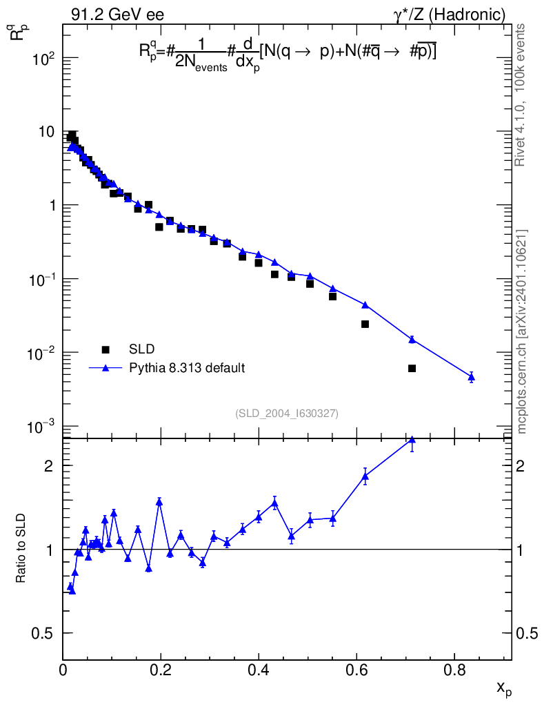 Plot of rqp in 91.2 GeV ee collisions