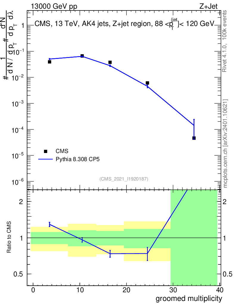 Lines: data, pythia8 8.308 CP5 |