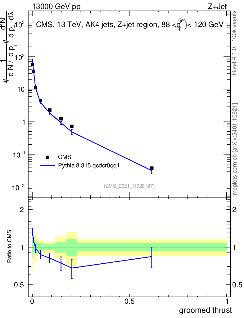 Lines: data, pythia8 8.315 qcdcr0qq1 |