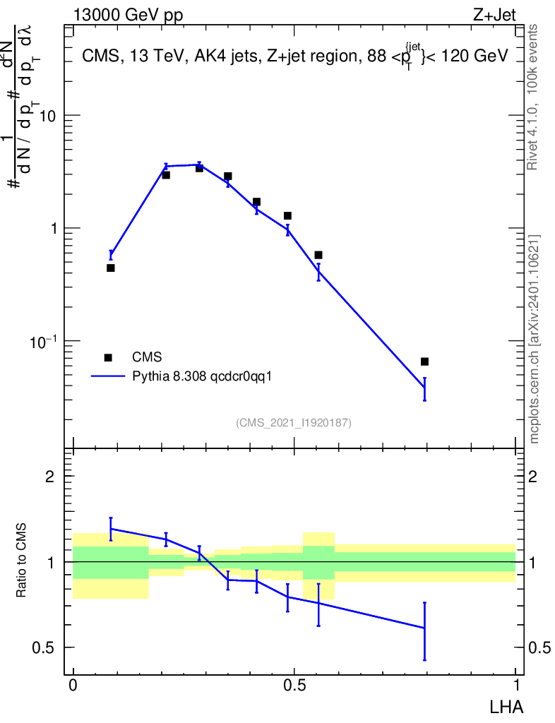 Lines: data, pythia8 8.308 qcdcr0qq1 |