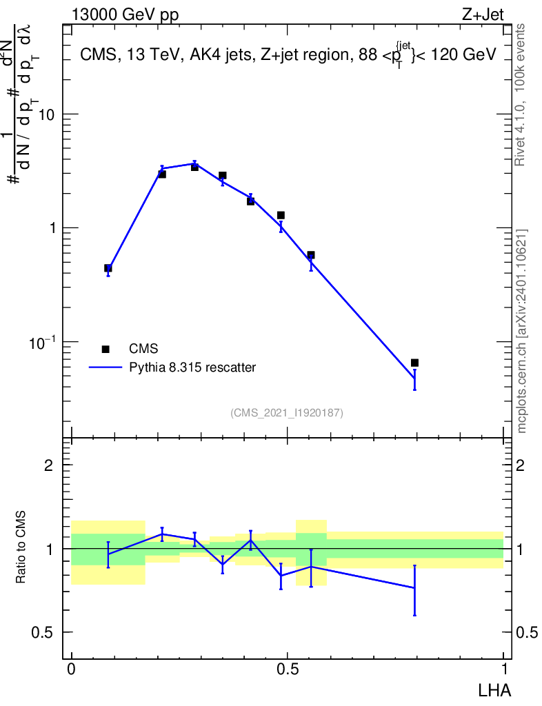Lines: data, pythia8 8.315 rescatter |