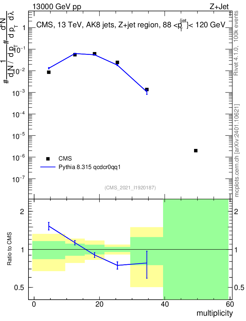 Lines: data, pythia8 8.315 qcdcr0qq1 |
