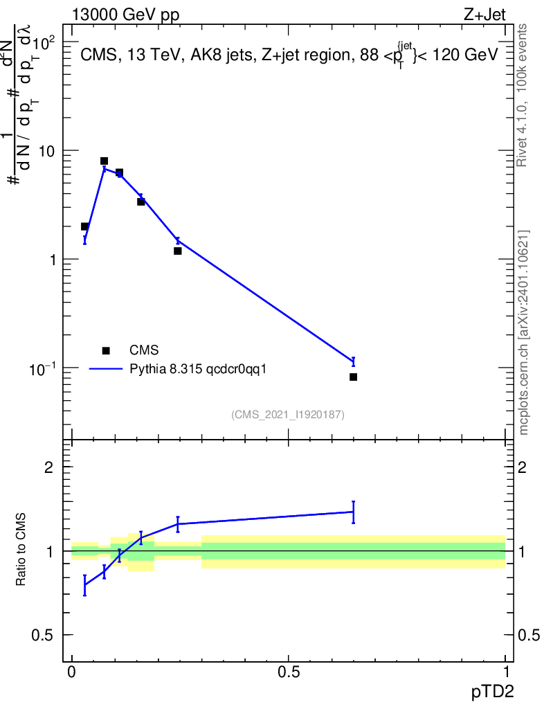 Lines: data, pythia8 8.315 qcdcr0qq1 |