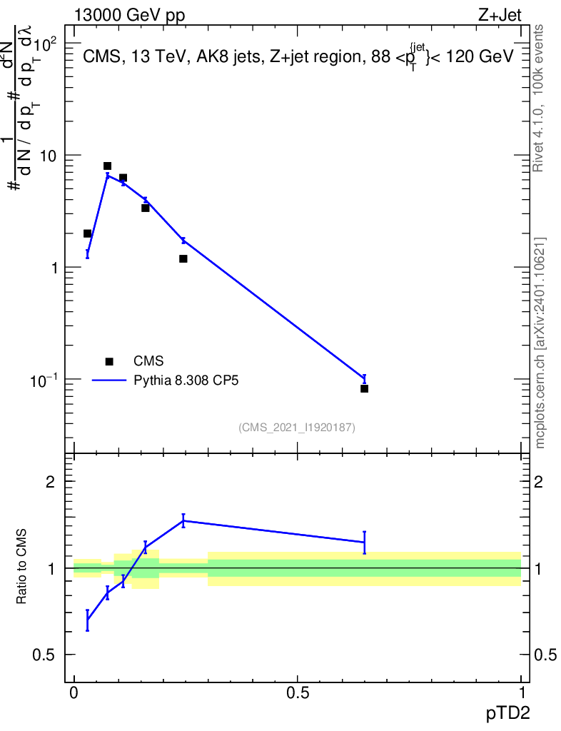 Lines: data, pythia8 8.308 CP5 |