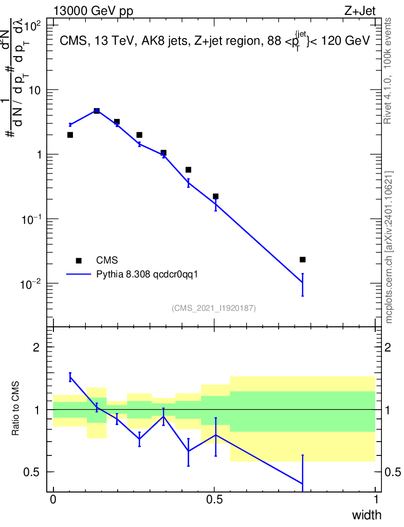 Lines: data, pythia8 8.308 qcdcr0qq1 |
