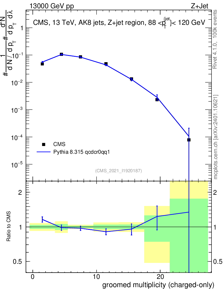 Lines: data, pythia8 8.315 qcdcr0qq1 |