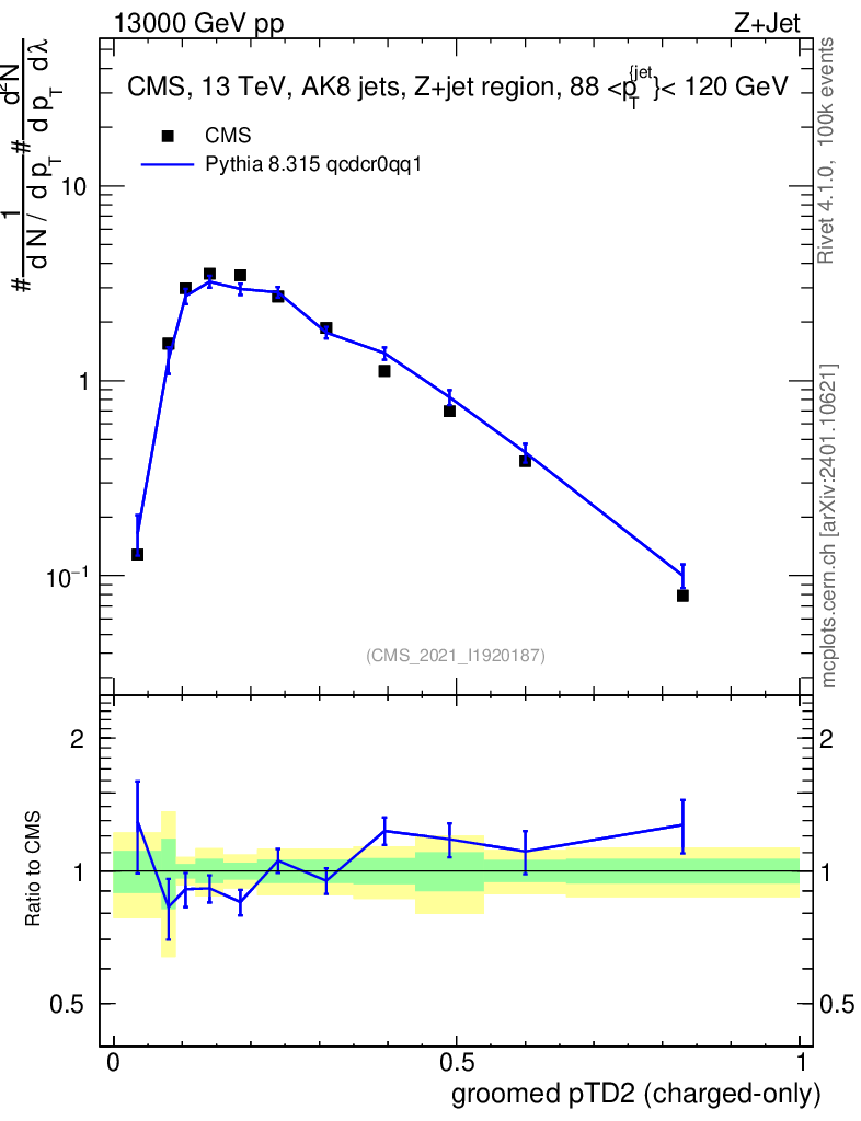 Lines: data, pythia8 8.315 qcdcr0qq1 |
