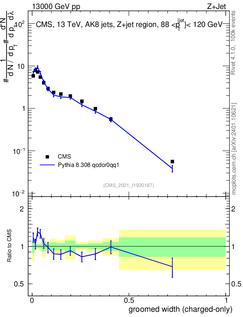 Lines: data, pythia8 8.308 qcdcr0qq1 |