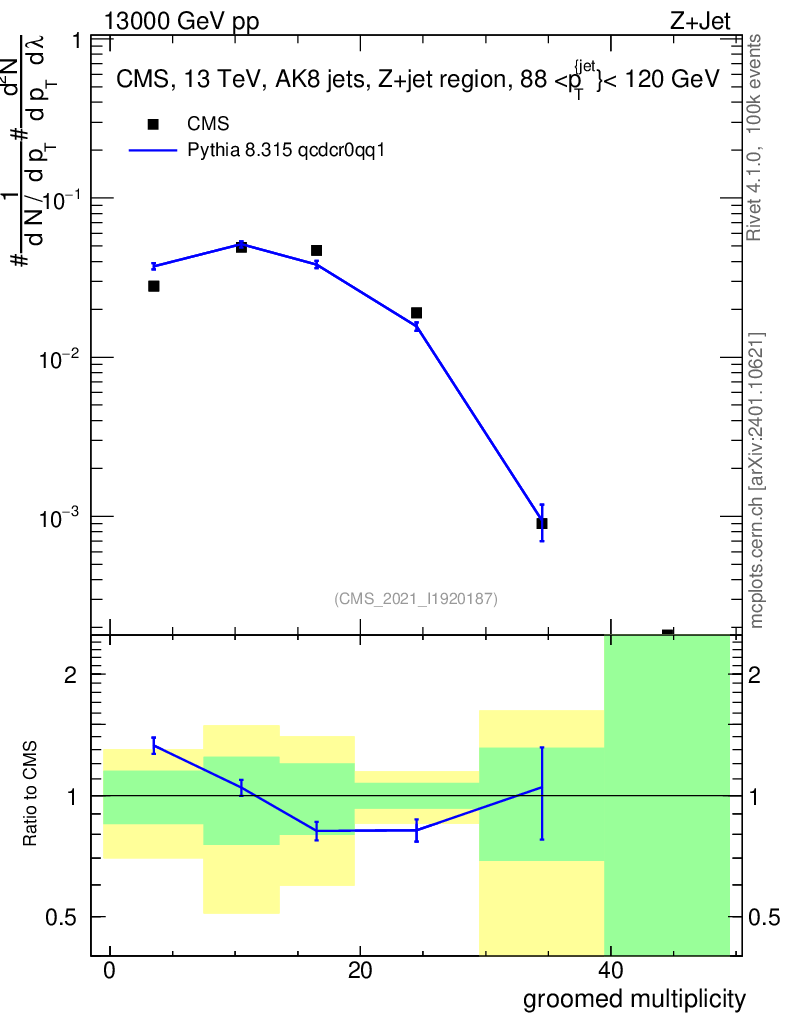 Lines: data, pythia8 8.315 qcdcr0qq1 |