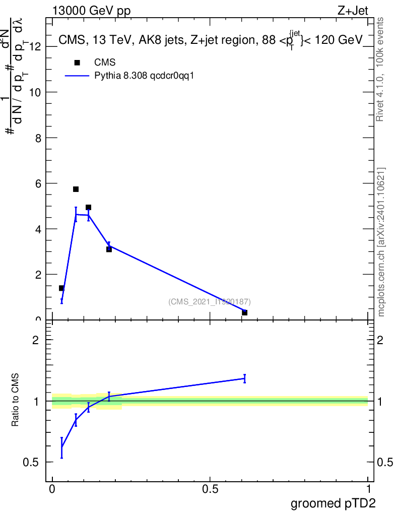 Lines: data, pythia8 8.308 qcdcr0qq1 |
