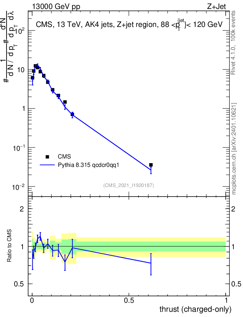 Lines: data, pythia8 8.315 qcdcr0qq1 |